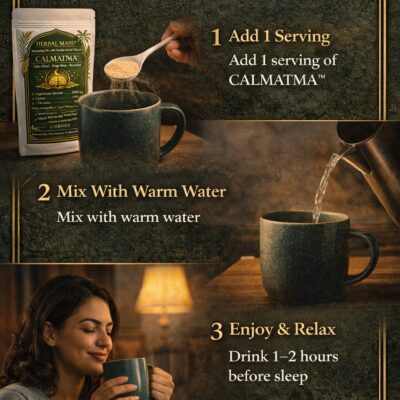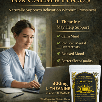 ₹799.00Original price was: ₹799.00.₹399.00Current price is: ₹399.00.Modern life often brings mental overload, long working hours, and irregular sleep patterns. Many people struggle with overthinking, restlessness, and poor-quality sleep. Herbal Mass® CALMATMA™ is carefully designed to support natural relaxation, promote deeper rest, and help the body recover overnight. Unlike conventional sleep supplements that rely on melatonin or strong sedatives, CALMATMA™ works by…